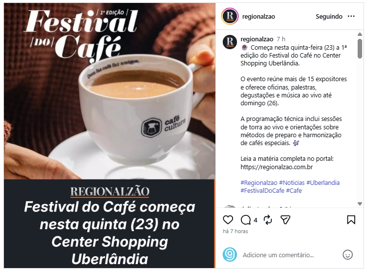1ª edição do Festival do Café começa nesta quinta-feira (23) no Center Shopping Uberlândia