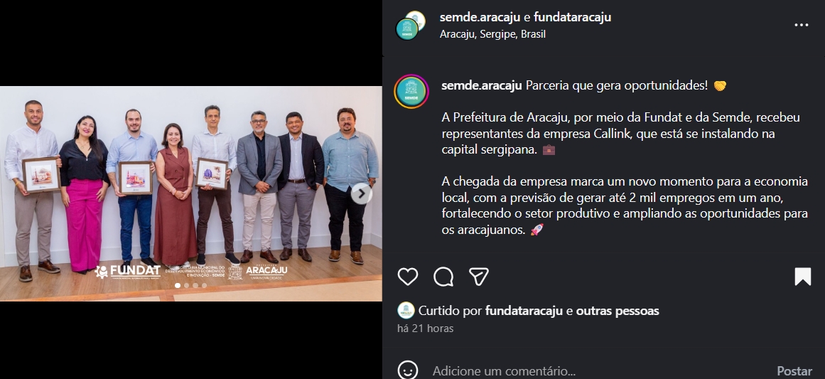 A Prefeitura de Aracaju, por meio da Fundat e da Semde, recebeu representantes da empresa Callink