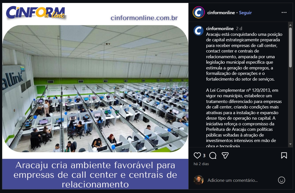 Aracaju cria ambiente favorável e legalizado para empresas de call center e centrais de relacionamento
