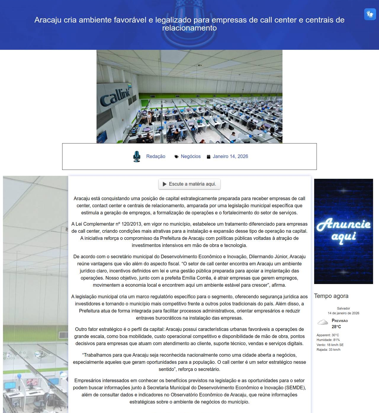 Aracaju cria ambiente favorável e legalizado para empresas de call center e centrais de relacionamento