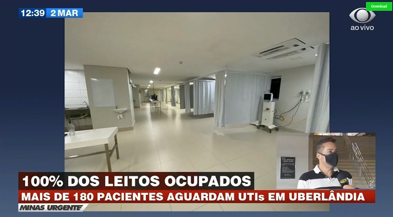 BAND TRIÂNGULO - Ao vivo sobre a ocupação total dos leitos em Uberlândia com imagens dos novos leitos no UMC - 02.03