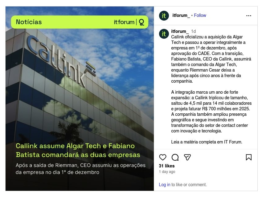 Callink assume Algar Tech e Fabiano Batista comandará as duas empresas