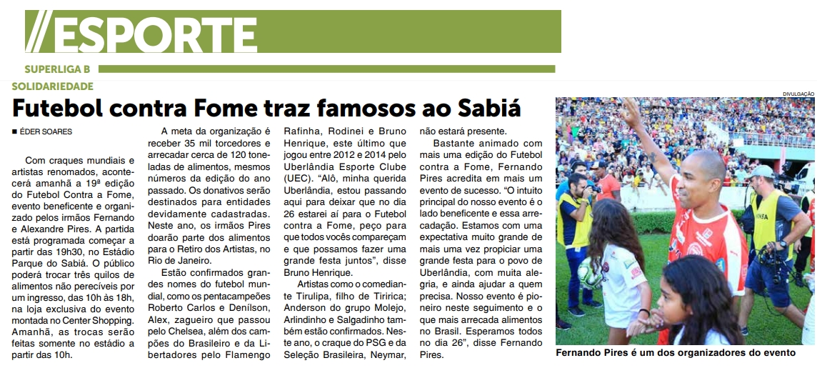 Center Shopping é ponto exclusivo para troca de ingressos do 'Futebol Contra a Fome'