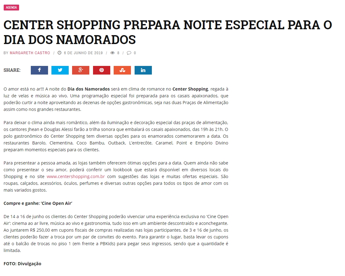 CENTER SHOPPING PREPARA NOITE ESPECIAL PARA O DIA DOS NAMORADOS