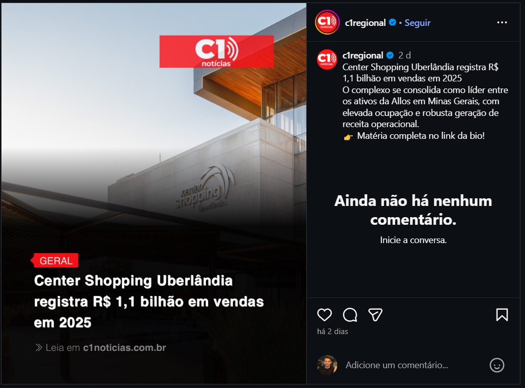 Center Shopping Uberlândia registra R$ 1,1 bilhão em vendas em 2025