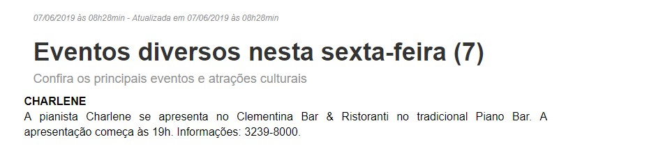 Clementina Bar e Ristoranti tem programação musical com Piano Bar nesta semana (07/06)