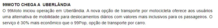 DIÁRIO DE UBERLÂNDIA - ONLINE - 99Moto chega a Uberlândia como mais uma opção de transporte por aplicativo - 21.10