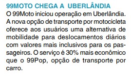 DIÁRIO DE UBERLÂNDIA - RADAR DIÁRIO - 99Moto chega a Uberlândia como mais uma opção de transporte por aplicativo - 21.10