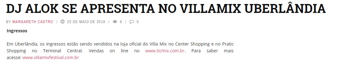 DJ ALOK SE APRESENTA NO VILLAMIX UBERLĀNDIA - Pontos de venda