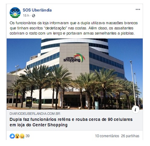 Dupla faz funcionários reféns e rouba cerca de 90 celulares em loja do Center Shopping
