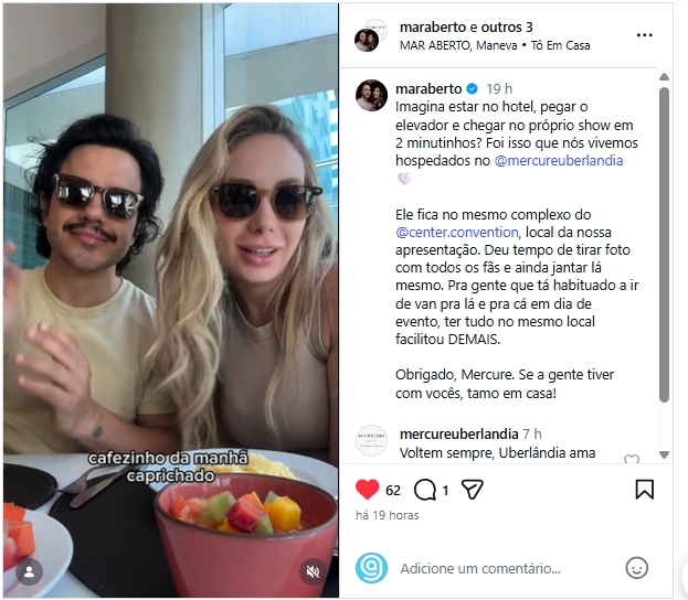 Dupla Mar Aberto - Hospedagem no Mercure - Reels 19/01/2026