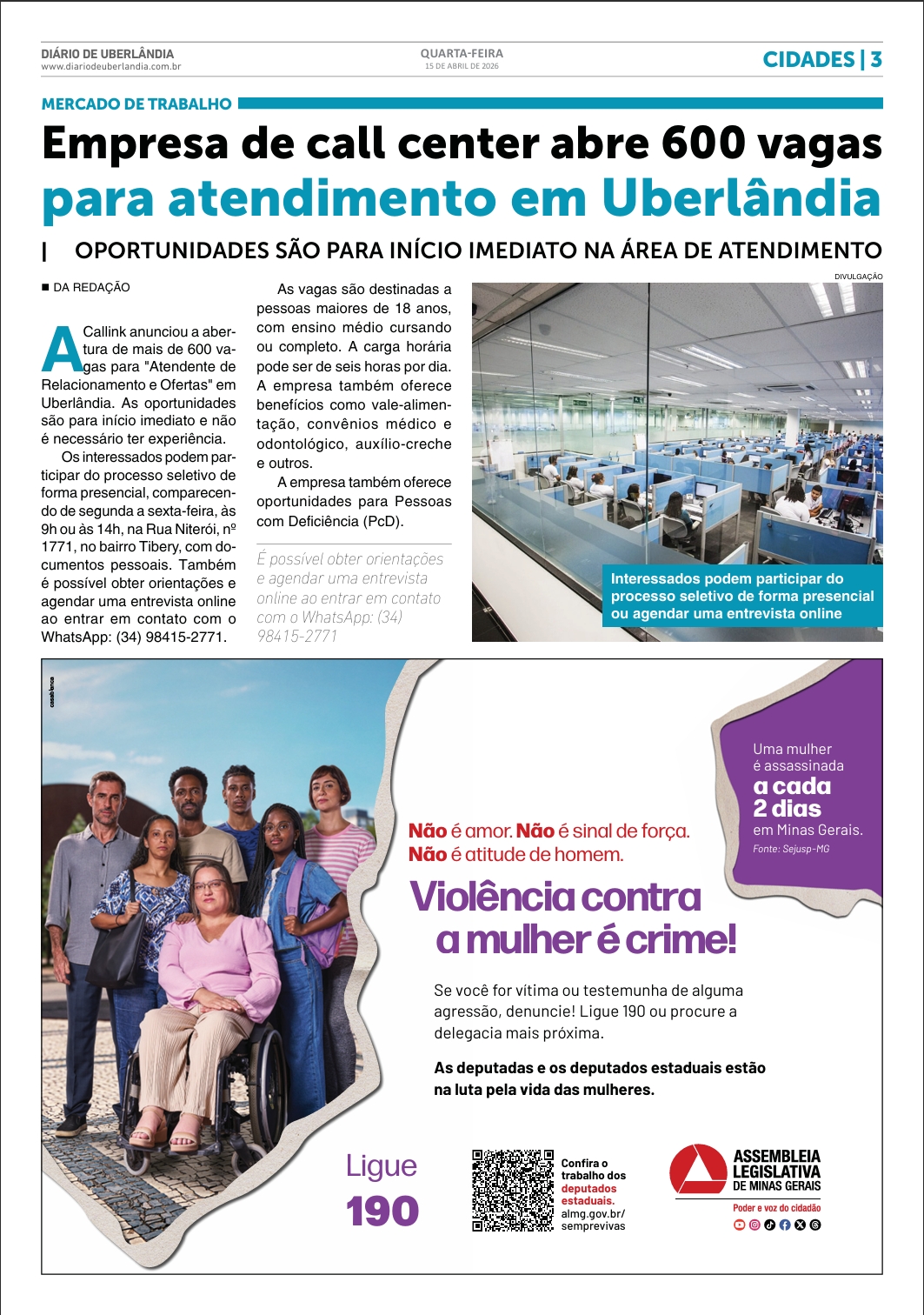Empresa de call center abre 600 vagas para atendimento em Uberlândia