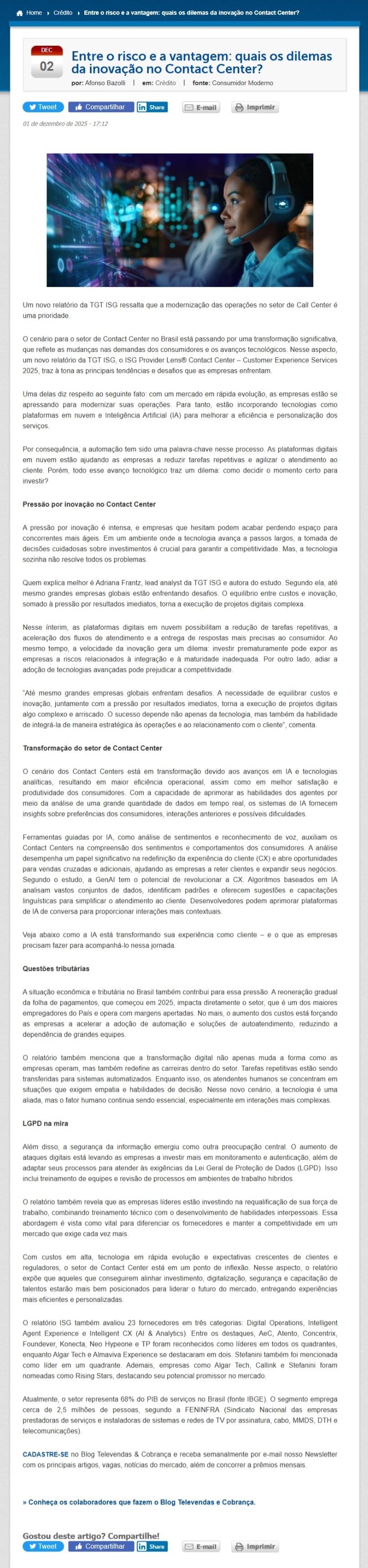 01/12/2025 - Blog Televendas & Cobrança