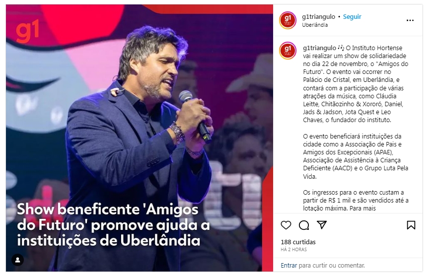 FEED-Iniciada a venda dos ingressos individuais para o show beneficente Amigos do Futuro, do Instituto Hortense-21.11