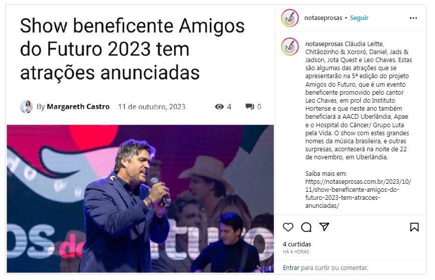 FEED - Show beneficente Amigos do Futuro 2023 tem atrações anunciadas - 11.10