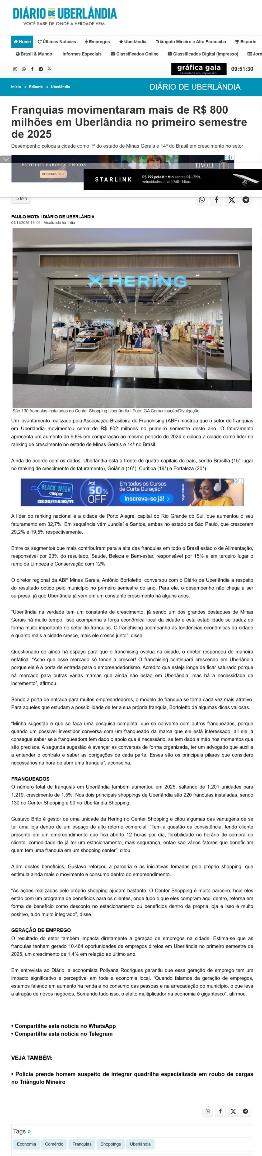 https://diariodeuberlandia.com.br/noticia/39235/franquias-movimentaram-mais-de-r-800-milhoes-em-uberlandia-no-primeiro-semestre-2025
