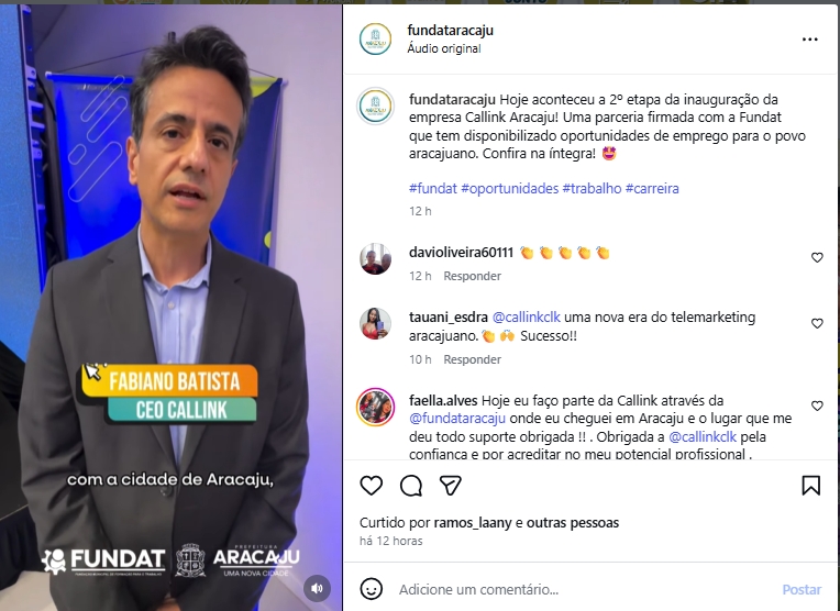 FUNDAT ARACAJU - REELS -INAUGURAÇÃO CALLINK EM ARACAJU - 26/03/2026