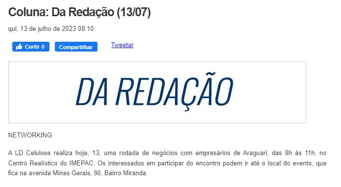 GAZETA DO TRIÂNGULO - Coluna: da redação - Encontro de negócio LDC - 13.07