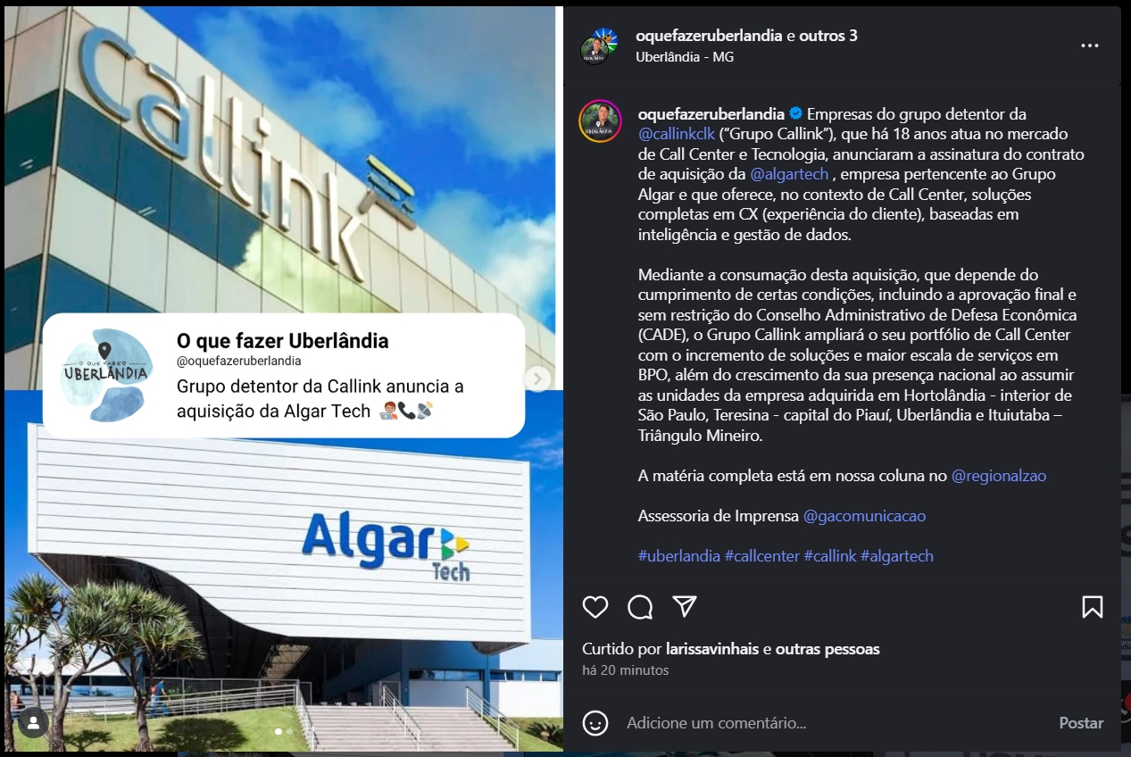 Grupo detentor da Callink anuncia a aquisição da Algar Tech