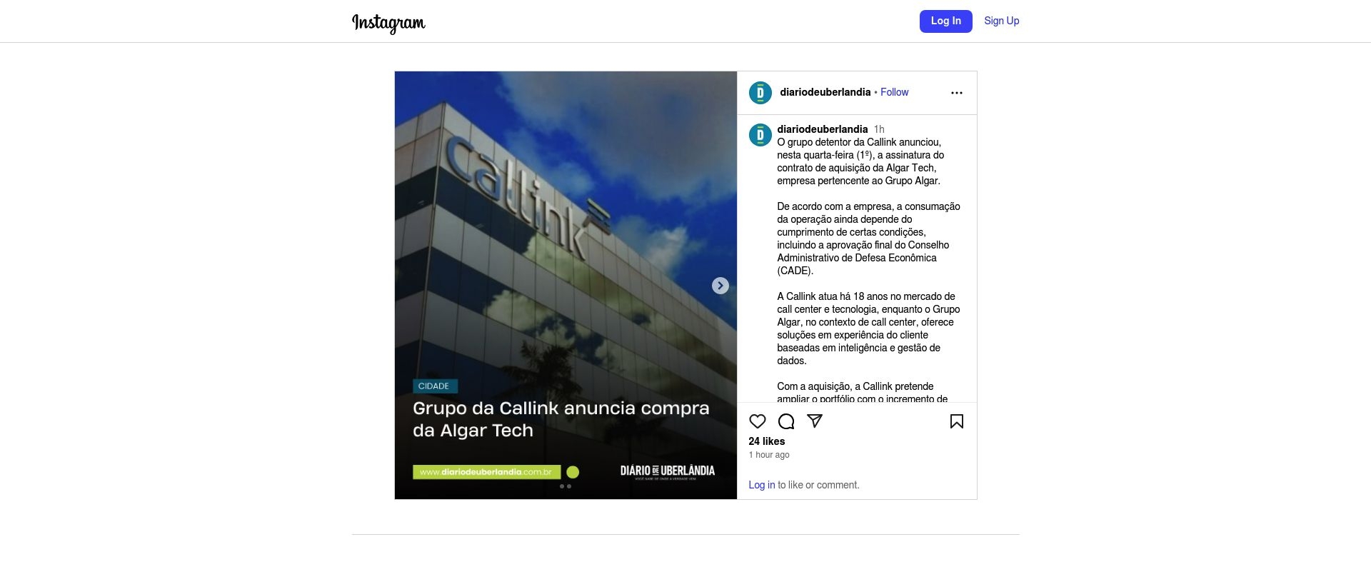 Grupo detentor da Callink anuncia a aquisição da Algar Tech
