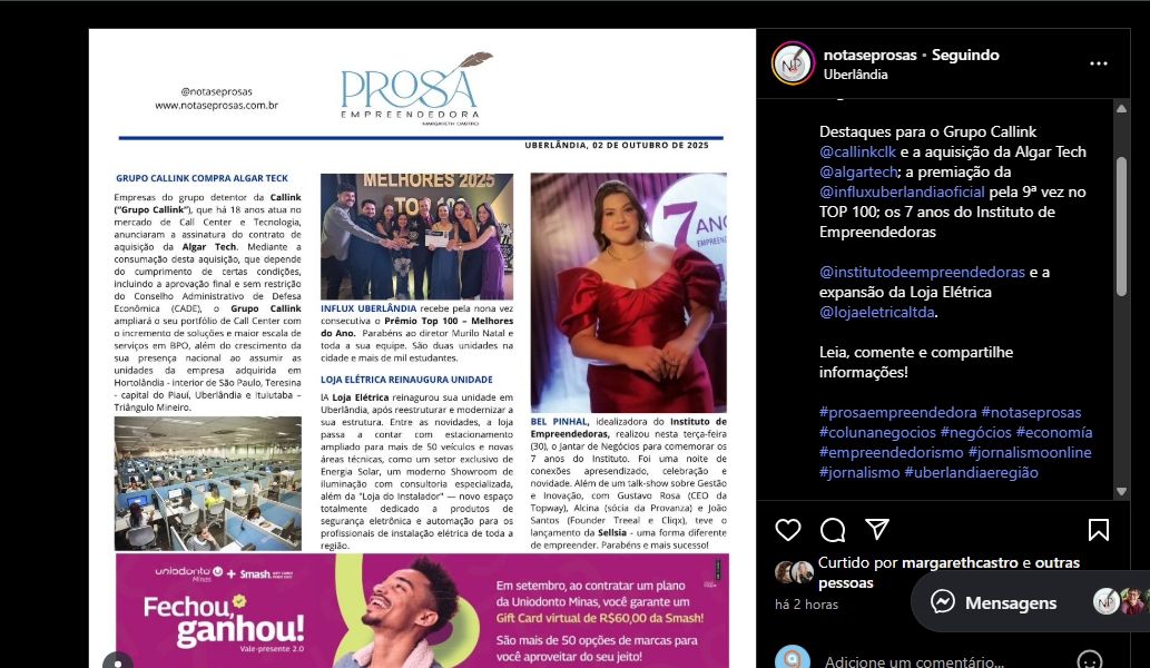 Grupo detentor da Callink anuncia a aquisição da Algar Tech
