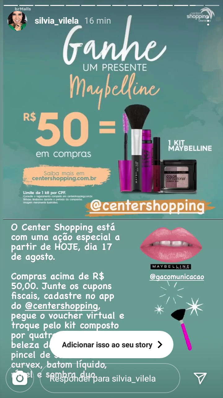 INSTAGRAM - Stories - Center Shopping promove campanha e presenteia clientes - (17/08)