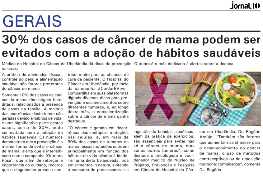 JORNAL - 30% dos casos de câncer de mama podem ser evitados com a adoção de hábitos saudáveis - 15/10