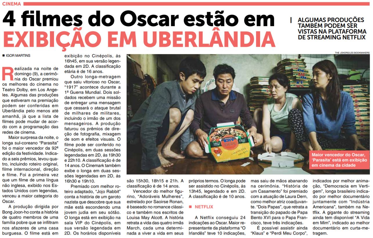 JORNAL - 4 filmes do Oscar estão em exibição em Uberlândia - CINEMA - 10/02