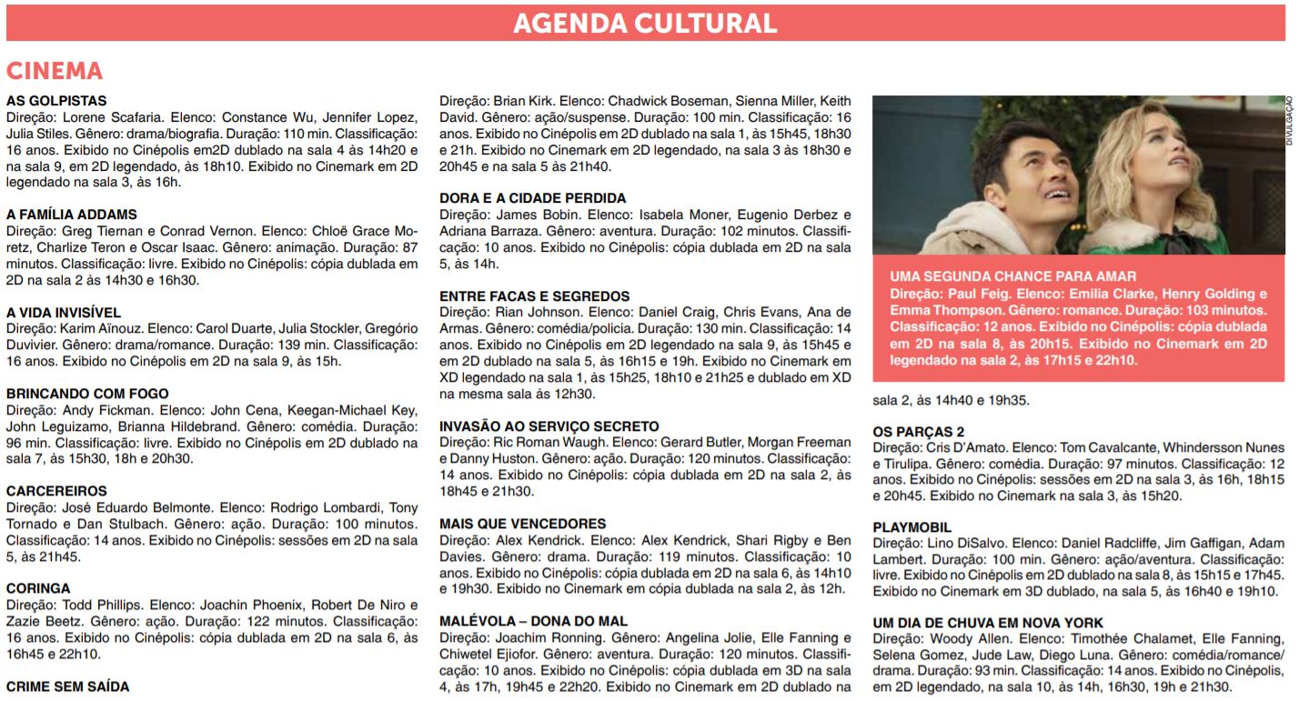 JORNAL - AGENDA CULTURAL - CINEMA (15/12)