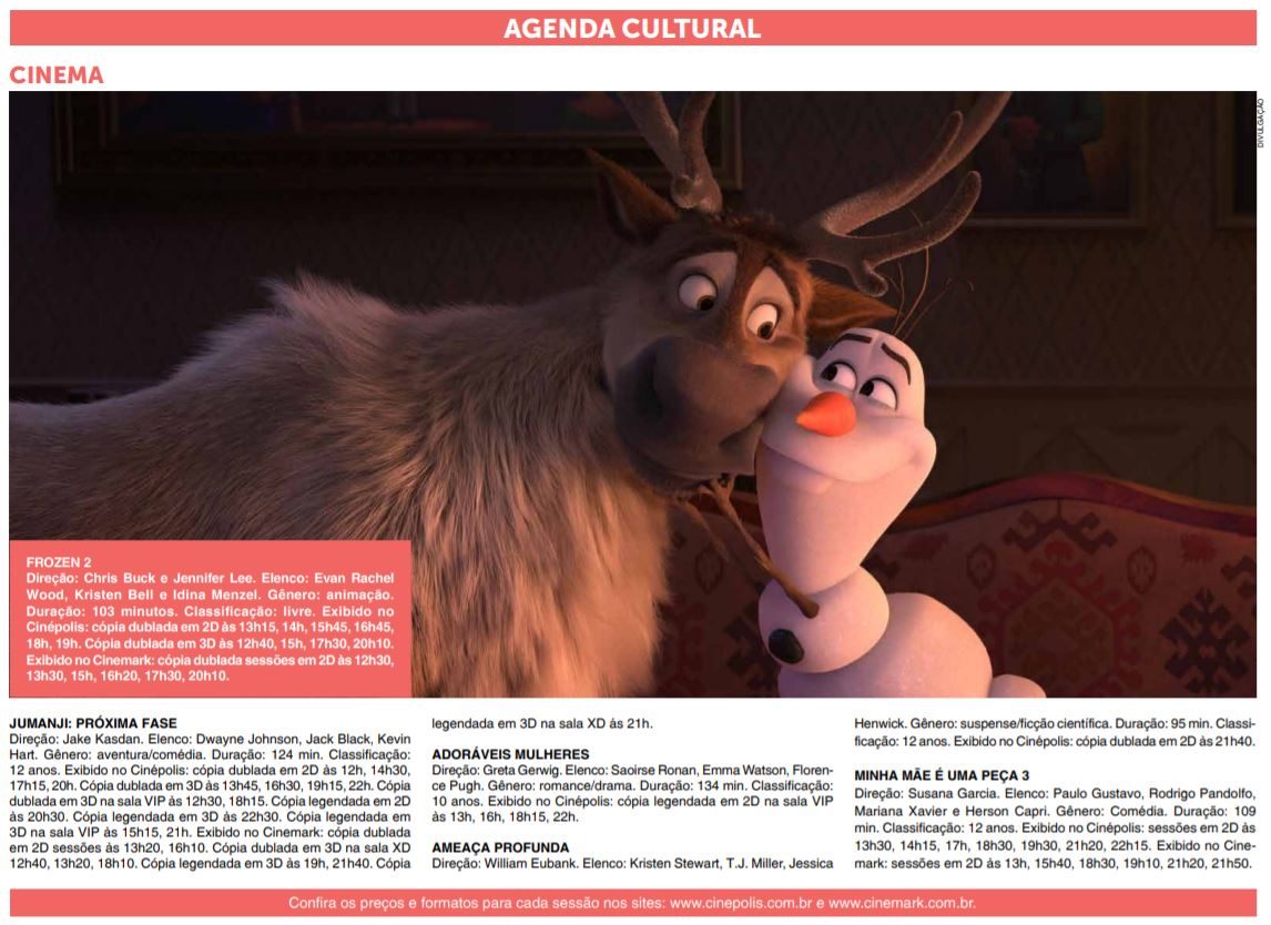 JORNAL - AGENDA CULTURAL - CINEMA - 19/01
