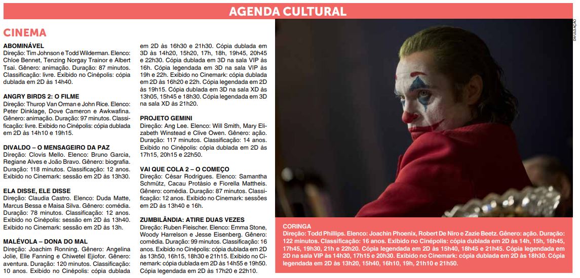 JORNAL - AGENDA CULTURAL - CINEMA (25/10)