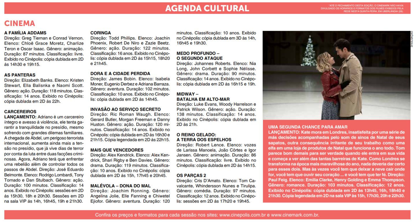 JORNAL - AGENDA CULTURAL - CINEMA (28/11)
