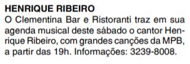 JORNAL - AGENDA CULTURAL - HENRIQUE RIBEIRO - 28/12