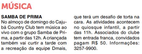 JORNAL - AGENDA CULTURAL - MÚSICA - SAMBA DE PRIMA - 09/02