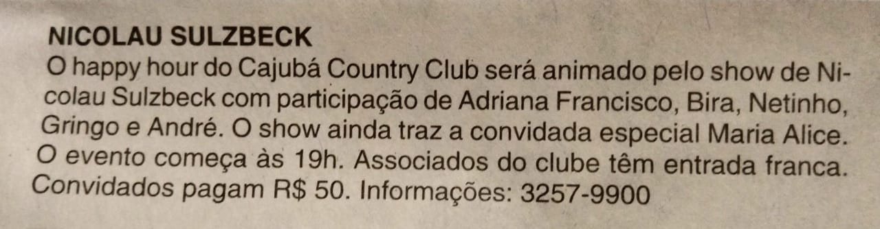 JORNAL - AGENDA CULTURAL - NICOLAU SULZBECK - 24/01
