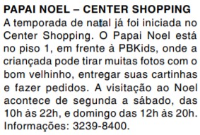 JORNAL - AGENDA CULTURAL - PAPAI NOEL - CENTER SHOPPING (15/12)