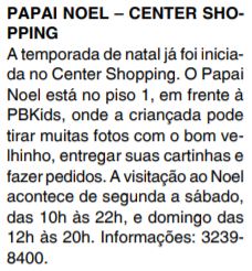 JORNAL - AGENDA CULTURAL - PAPAI NOEL - CENTER SHOPPING (21/11)