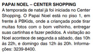 JORNAL - AGENDA CULTURAL - PAPAI NOEL - CENTER SHOPPING (28/11)