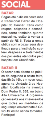 JORNAL - Bazar em prol do Hospital do Câncer - 19/11