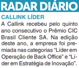 JORNAL - Coluna Radar Diário - Callink Líder - 02/10