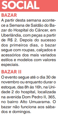 JORNAL - Coluna Social - Bazar do Hospital do Câncer - 24/11