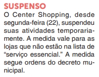 JORNAL - COLUNA SOCIAL - Funcionamento Center Shopping - 23/06