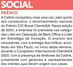 JORNAL - COLUNA SOCIAL - Prêmio CIC Brasil ClienteSA - 03/10