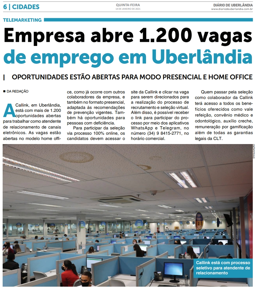 JORNAL - Empresa abre 1.200 vagas de emprego em Uberlândia - 14/01