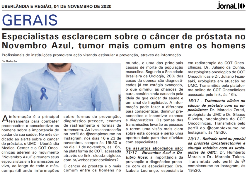 JORNAL - Especialistas esclarecem sobre o câncer de próstata no Novembro Azul - 04/11