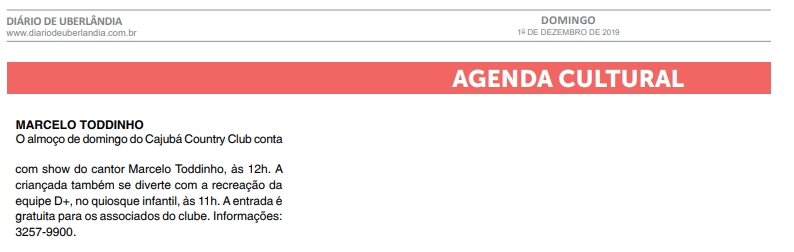 JORNAL - Eventos diversos neste domingo - (01/12)