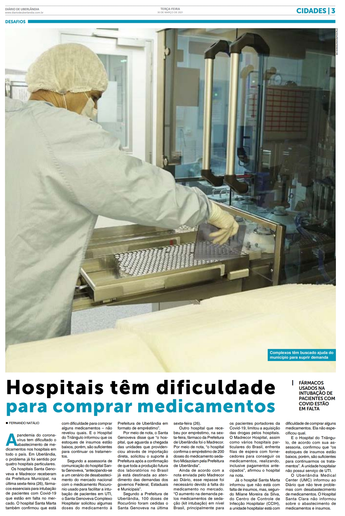JORNAL - Hospitais têm dificuldade para comprar medicamentos - menção ao UMC - 30.03