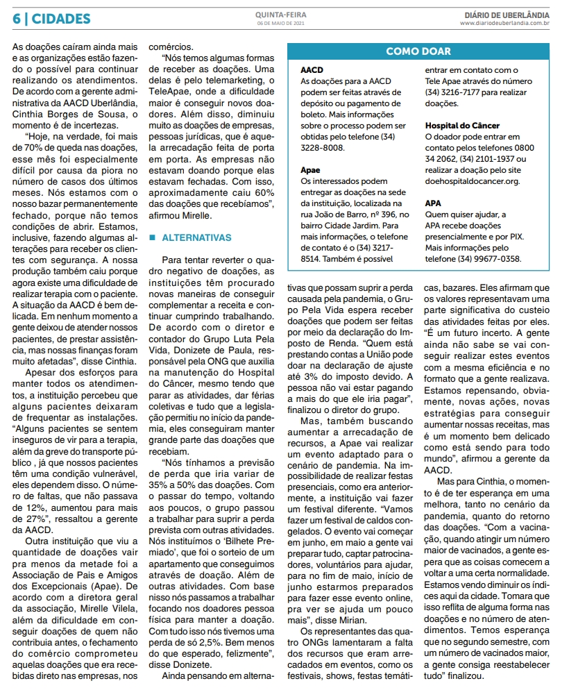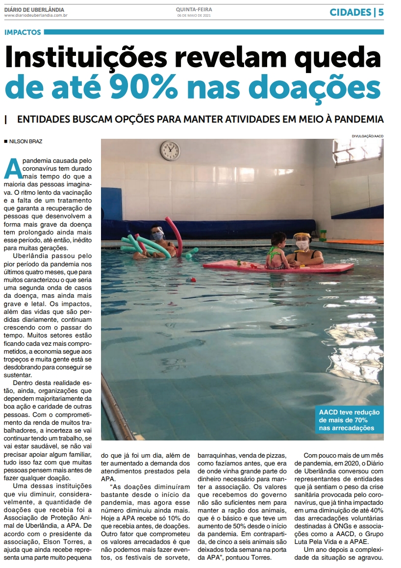 JORNAL - Instituições revelam queda de até 90% nas doações - Entrevista com Donizete de Paula - 06.05