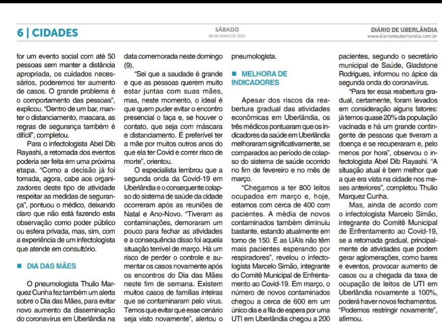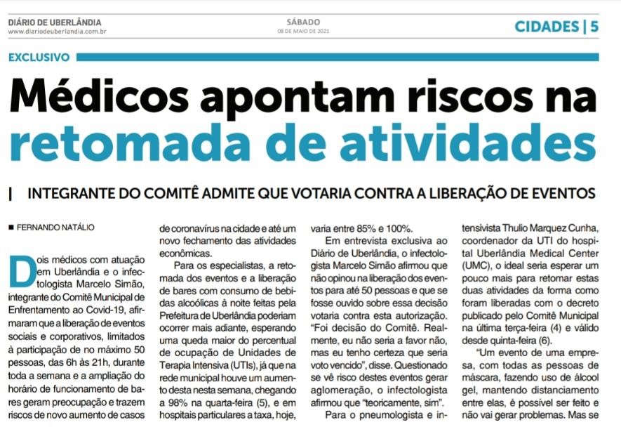 JORNAL - Médicos apontam riscos na retomada das atividades - Entrevista Dr. Thulio Cunha - 08.05