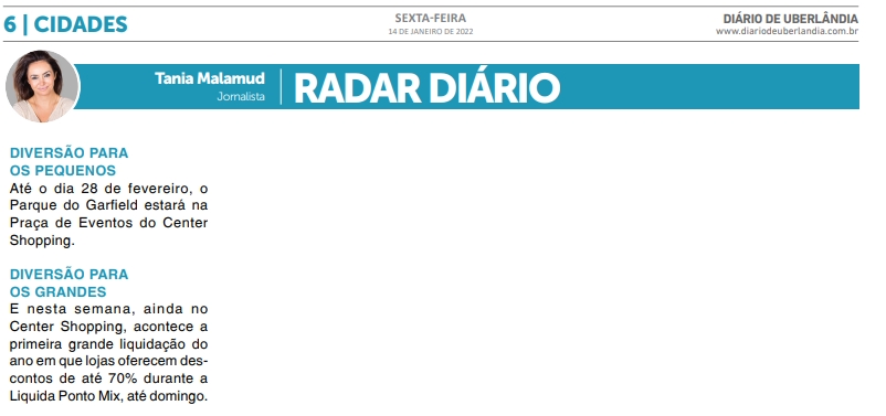 JORNAL - Nota sobre Ponto Mix e Parque do Garfield - 14.01